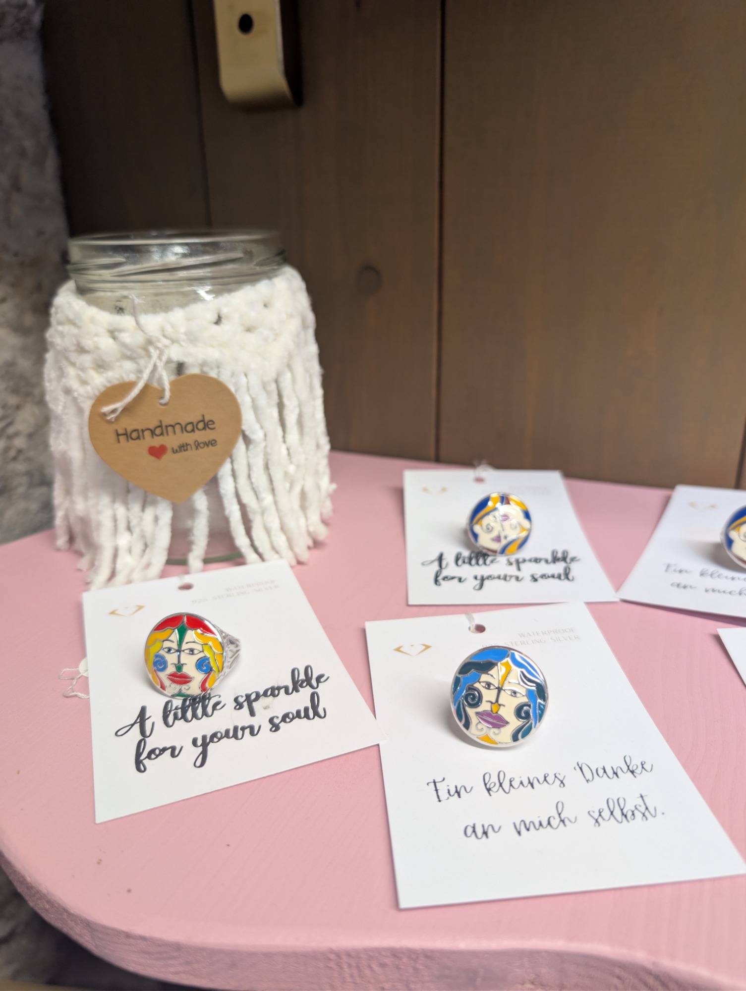 erwartet euch eine tolle Auswahl an regionalen, kleinen Künstler/innen mit vielen verschiedenen Herzensstücken. Von Postkarten über Holzhühner & Makramee bis hin zum Silberschmuck ist für wirklich jeden etwas dabei.