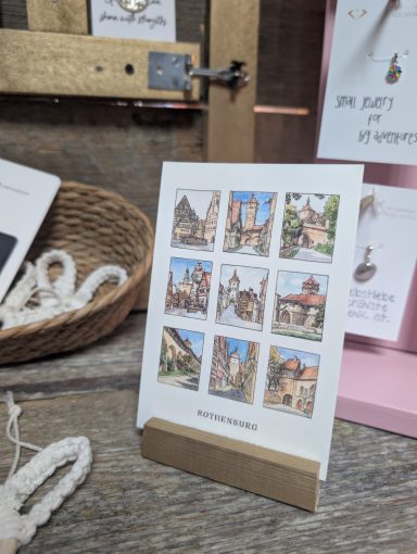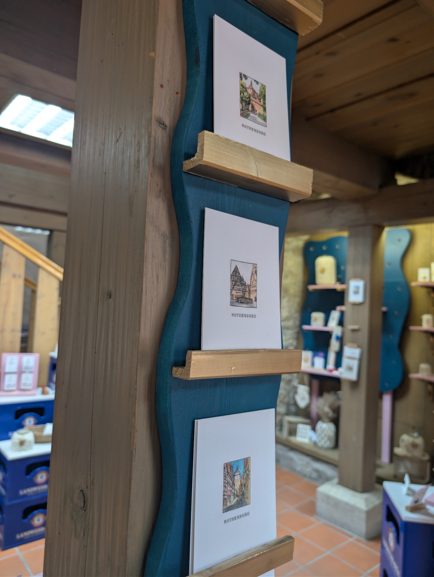 Hauptberuflich ist Christian selbstständiger Grafikdesigner und Illustrator. Im Pop Up Store präsentiert er seine kleinen Zeichnungen von Rothenburg als Postkarten & Magnete und das sogar im alten Automaten.