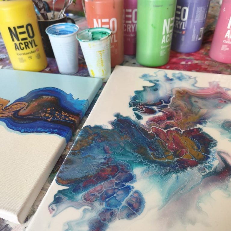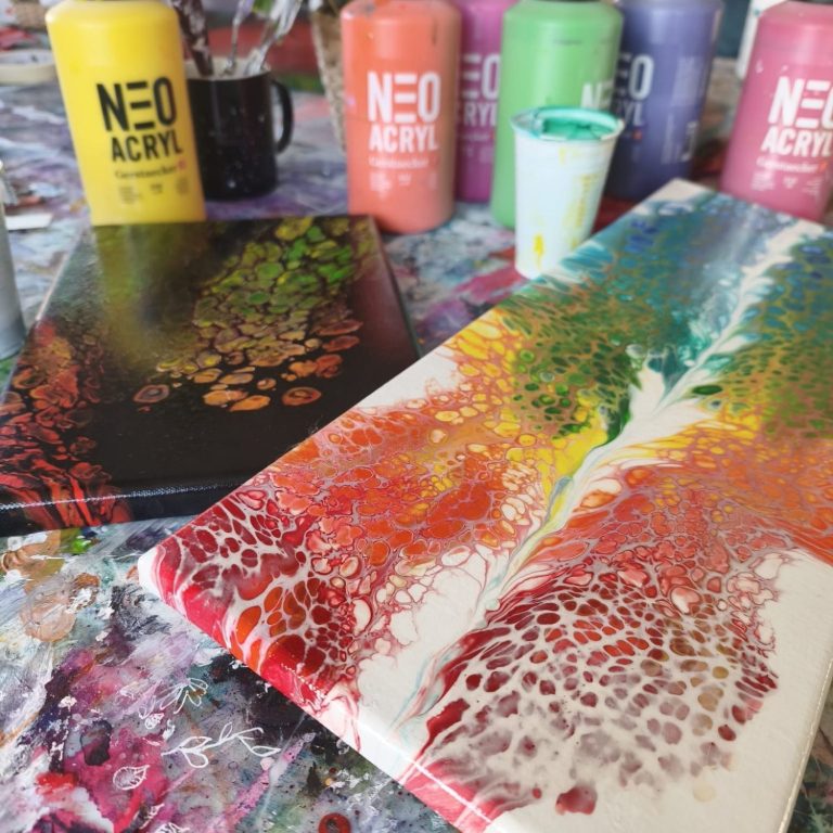 Was: du gestaltest dein eigenes Pouring Kunstwerk auf Leinwand
