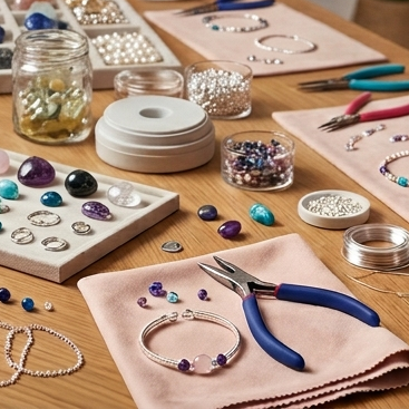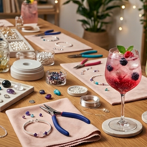 Du tauchst ein in die Welt der Edelsteine und suchst dir deine Lieblingssteine aus – ob zart, kraftvoll, farbig oder minimalistisch. Danach kombinierst du sie mit echten Silber‑Elementen und stellst unter Anleitung dein eigenes Schmuckstück her.