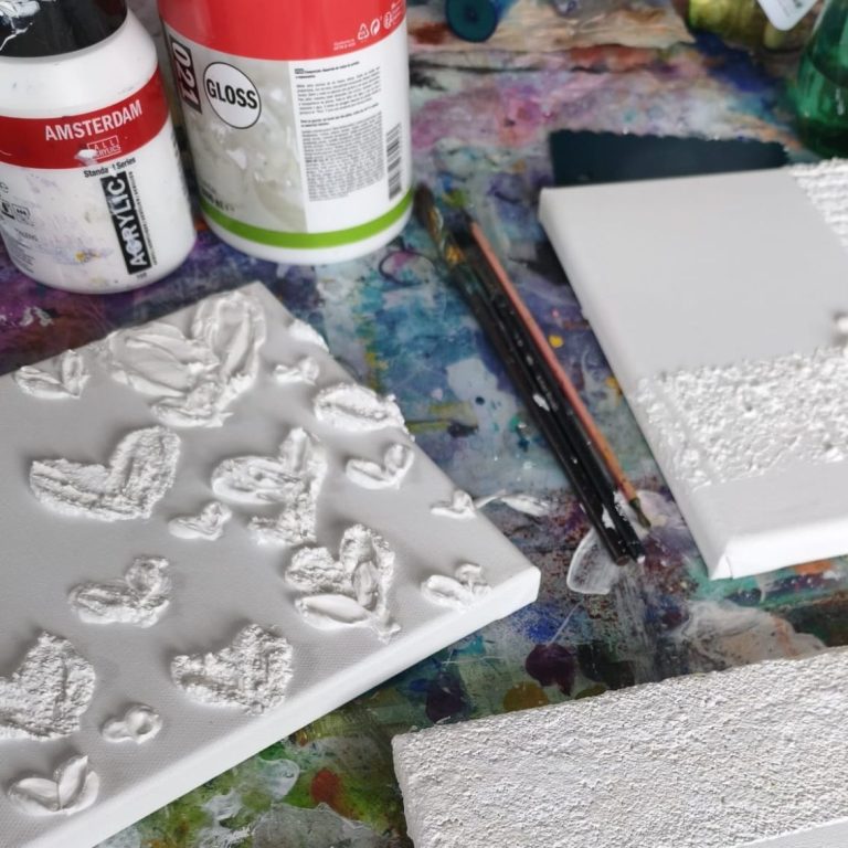 Dich erwarten vorbereitete Leinwände mit wunderschönen Texturstrukturen, die nur darauf warten, von dir bemalt zu werden. Mit Acrylfarben bringst du die Texturen zum Leuchten – ganz ohne Vorkenntnisse. Einfach drauflos malen, ausprobieren, genießen.