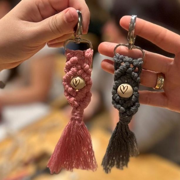 In einer entspannten, kindgerechten Runde lernen die Kids einfache Makramee‑Grundknoten kennen und setzen sie direkt an ihren eigenen Schlüsselanhängern um. Schritt für Schritt entstehen kleine, bunte Designs, die leicht zu schaffen sind und trotzdem richtig hochwertig aussehen.